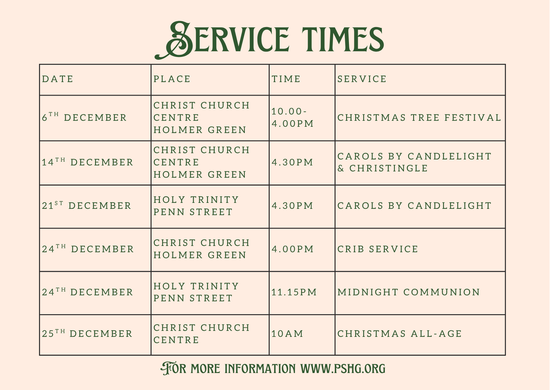 We meet in two places just to confuse things (details here) for our Sunday Services starting at 10am. On the 1st, 3rd & 4th Sundays of the month we're at Christ Church Holmer Green, either in the Church Centre or the church building. On the 2nd and 5th (if there is one!) we meet at Holy Trinity Penn Street.